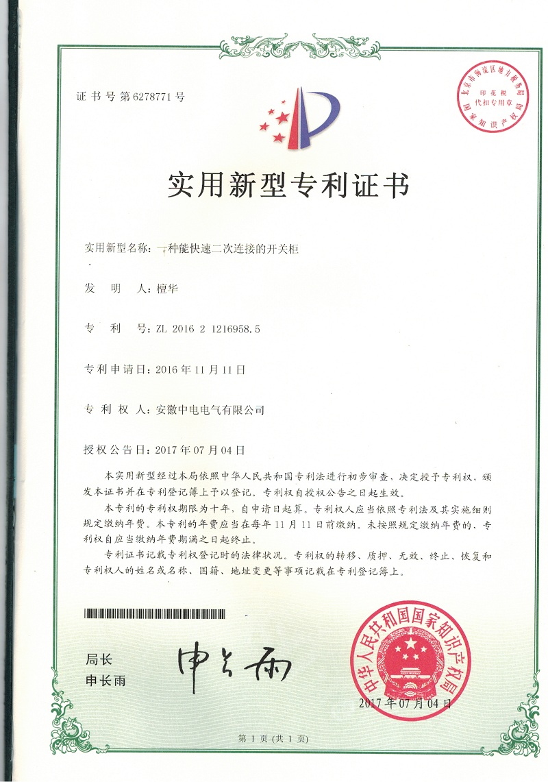 - 實用新型專利證書