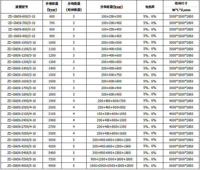 ZG-GWJ裝置適用于3~35kV系列電力系統(tǒng)中,用以補償系統(tǒng)無功功率,提高功率因數(shù),調(diào)整電網(wǎng)電壓,降低線路損耗,改善供電質(zhì)量,提高供配電設(shè)備的使用效率,容量可從數(shù)百千乏到數(shù)萬千乏。該裝置在主接線型式、保護方式、限制涌流及抑制諧波過負荷等方面進行了綜合考慮,以保證運行安全可靠;裝置結(jié)構(gòu)簡單、緊湊,便于現(xiàn)場安裝和維護;可用于冶金、礦山、石油、化工、機械、建材、市政、輕工等行業(yè)。